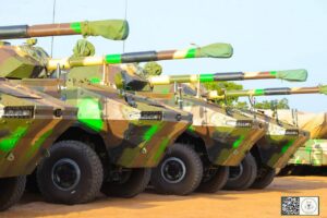Il s’agit de véhicules blindés et d’autres types de véhicules de combat acquis au profit des Forces armées nationales notamment du Bataillon d’artillerie de campagne et d’intervention rapide (BACIR) et du Bataillon blindé d’intervention rapide (BBIR).