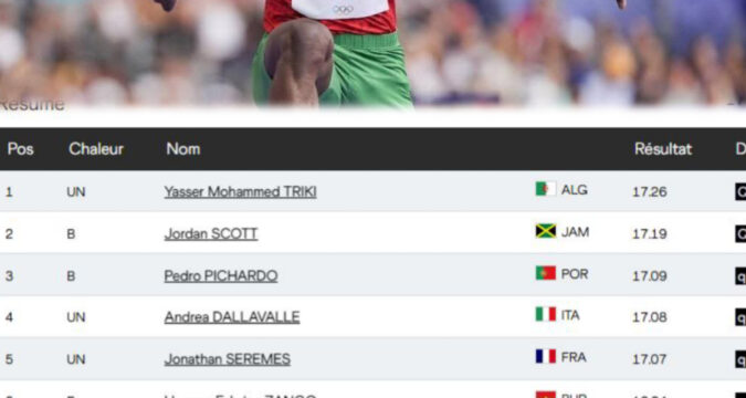 Dans le classement général, Hugues Fabrice Zango est parmi les 12 qualifiés pour la finale prévue le vendredi 19 septembre 2025 à Tokyo vendredi à 20h50 heure locale, 11h50 T.U.