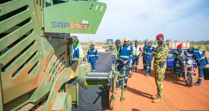 Le jeudi 8 janvier 2026, une de nos équipes est allée faire le constat. Sur place, les agents de la brigade Faso Mêbo des Koulsé s’apprêtent à poser la couche de roulement sur la route déjà terrassée par le Génie militaire. Toute la logistique est en branle: la goudronneuse, les camions remplis de bitume, les citernes, les compacteurs, entre autres, avec ces hommes et femmes enthousiastes sous la conduite technique du Capitaine Ripper Ulrich BENIN.