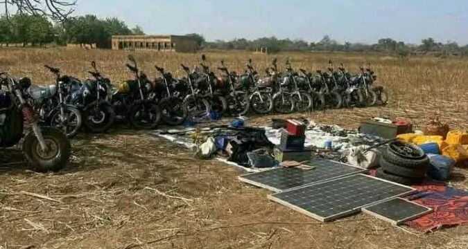 Les Forces combattantes ont également récupéré de nombreux matériels, dont 16 motos Apsonic, un tricycle, 19 téléphones et 80 détonateurs d’engins explosifs.